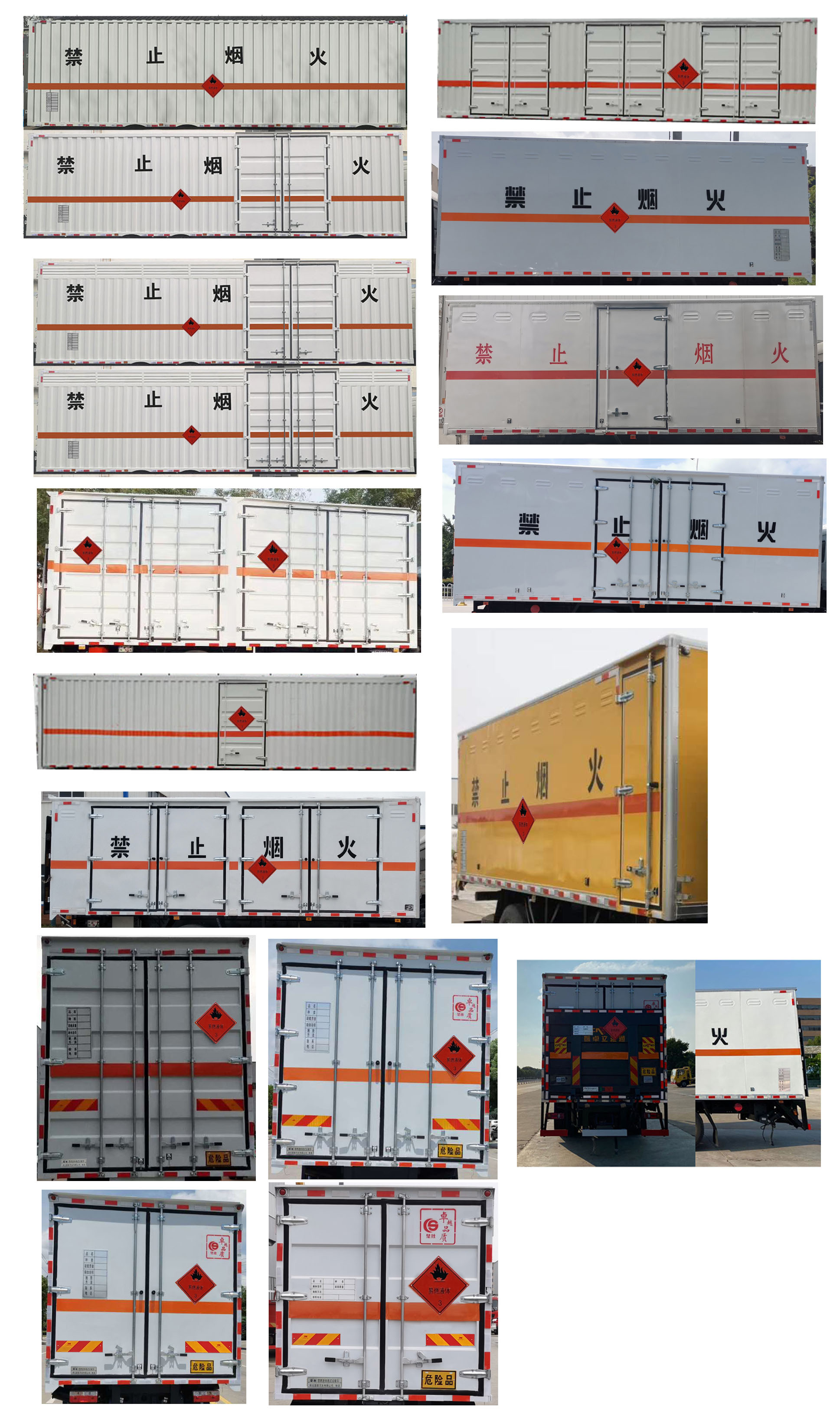 | 整車備注: | 1、該車適用于運輸危險品,運輸具有獨立容器(瓶)包裝的物品,運送危險物品類項號:3。廂體頂部封閉,不可開啟。2、側/后防護材料為Q235,側防護螺栓連接,后防護焊接,截面尺寸120×60mm,下邊緣離地高490mm。3、僅采用軸距(mm):4700,5000。隨底盤選裝駕駛室前面罩,選裝側窗玻璃,駕駛室頂部中間三個裝飾燈為選裝件,前霧燈為選裝件,駕駛室前臉擾流罩為選裝件。僅選用排氣管前置、限速裝置(限速80km/h)、前輪盤式制動及子午線輪胎的底盤,安裝帶有衛(wèi)星定位功能的行駛記錄儀,EBS型號/生產廠家:EBS5/東科克諾爾商用車制動系統(tǒng)(十堰)有限公司。采用的發(fā)動機與油耗值(L/100Km)對應關系為: B6.2NS6B210/26.5,DDi50E190-60/23.9。4、廂體側面選裝開門型式及位置,選裝不帶側開門,選裝瓦楞板結構;廂體側面板選裝開百葉窗。選裝尾板,尾板收起狀態(tài)水平長度為290mm,尾板質量為550kg。選裝ETC。 | ||