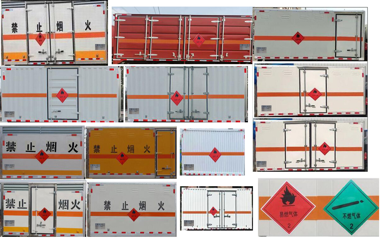 | 整車備注: | 該車用于危險品運(yùn)輸,廂體頂部封閉,不可開啟;介質(zhì)類項(xiàng)號2.1,2.2;僅采用2600,3000軸距底盤改裝;整車長/前懸/軸距/后懸/貨箱長對應(yīng)關(guān)系為(mm):4600/1181/2600/819/2500,4900/1181/2600/1119/2800,5200/1181/2600/1419/3100,5400/1181/2600/1619/3300,5800/1181/3000/1619/3700;隨底盤選裝駕駛室,選裝不帶導(dǎo)流罩;選裝側(cè)面不開門或開門,選裝側(cè)門型式及位置,選裝后部樣式,選裝瓦楞板結(jié)構(gòu),僅采用裝配前輪盤式制動器,前置排氣管,子午線輪胎,限速裝置的底盤;限速80km/h;該車安裝具有衛(wèi)星定位功能的行駛記錄儀;ABS型號及廠家:APG3550500A,浙江亞太機(jī)電股份有限公司。發(fā)動機(jī)/油耗值(L/100km): LJ4A15Q6及DAM16KLQ對應(yīng)油耗值均為:9.1??蛇x裝ETC車載裝置.運(yùn)輸易燃?xì)怏w時掛2.1類警示牌,運(yùn)輸非易燃無毒氣體時掛2.2類警示牌,轉(zhuǎn)向輪安裝輪胎爆胎應(yīng)急防護(hù). | ||