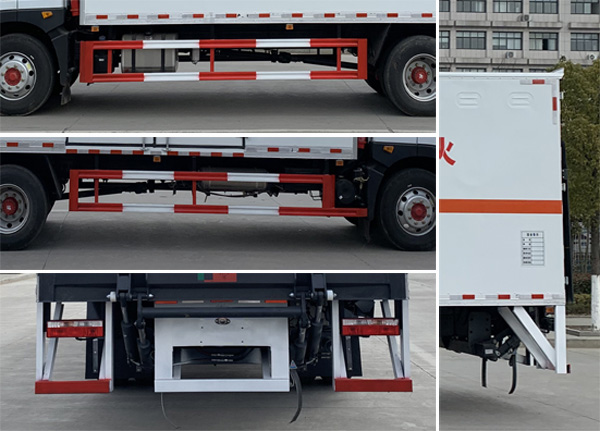 | 整車備注: | 該車為危險貨物運輸車輛,運輸介質(zhì)具有獨立容器包裝,介質(zhì)類項號:3;廂體頂部封閉,不可開啟;外形尺寸長(mm)/軸距(mm)/后懸(mm)的對應關系:9995/5600/3135,9100/5300/2540,8600/4700/2640;側(cè)、后防護材質(zhì)均為Q235,連接方式為焊接連接,后防護裝置斷面尺寸為(mm):120×50,離地高度:500mm;隨底盤選裝駕駛室;EBS型號/廠家:EBS/ESC-d/襄陽東風隆誠機械有限責任公司;僅采用子午線輪胎,排氣管前置,前輪盤式制動器,安裝限速裝置(限速80km/h).安裝具有衛(wèi)星定位的行駛記錄儀,轉(zhuǎn)向輪裝備輪胎爆胎應急防護裝置,后軸安裝空氣懸架,選裝ETC車載裝置;發(fā)動機型號及油耗值(L/100km)分別為:B6.2NS6B230(26.3),D4.5NS6B220(26.6),YCS04200-68(26.4),CY4SK761(26.8);安裝液壓尾板時,尾板收起狀態(tài)的水平長度300mm,尾板質(zhì)量450kg. | ||