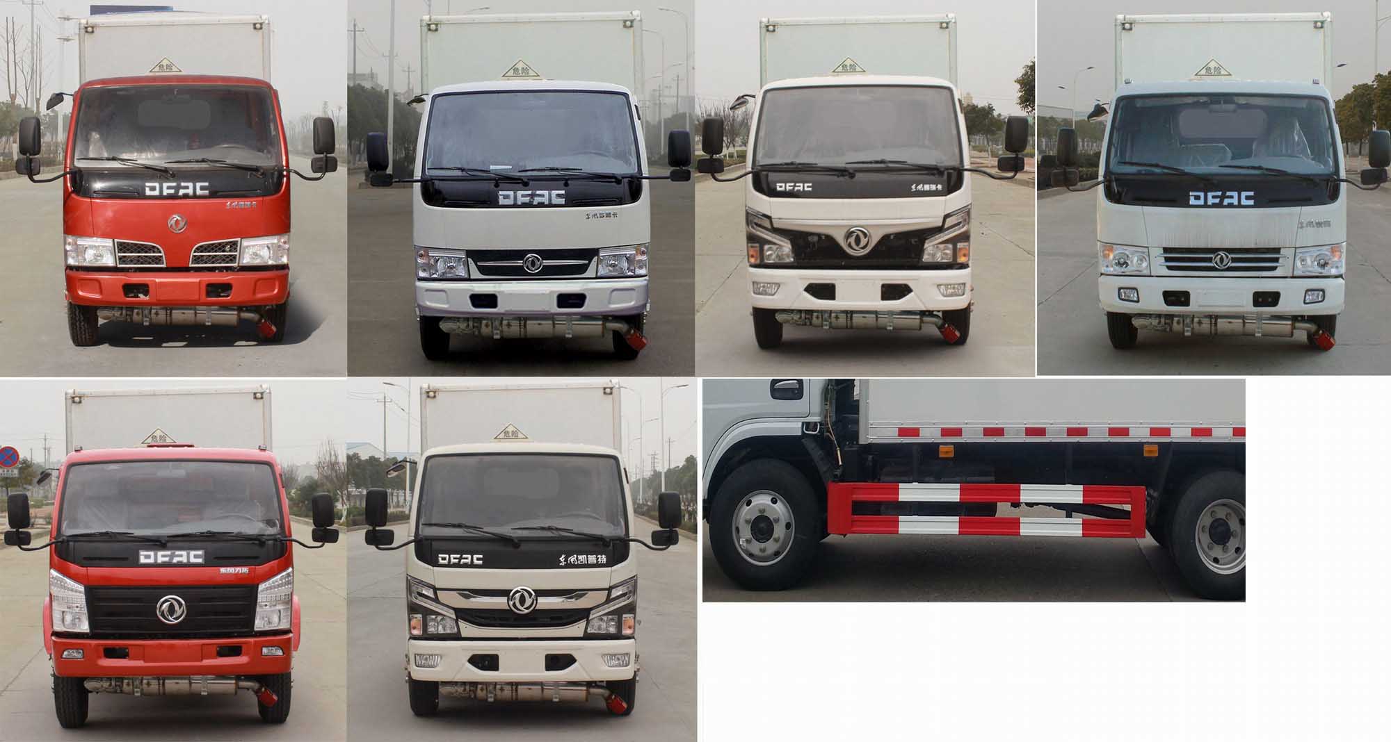 | 整車(chē)備注: | 1、該車(chē)用于危險(xiǎn)品運(yùn)輸,廂體頂部封閉,不可開(kāi)啟.運(yùn)輸介質(zhì)類(lèi)項(xiàng)號(hào)2.1,2.2。危險(xiǎn)品標(biāo)志牌選掛2.1類(lèi)易燃?xì)怏w警示牌或掛2.2類(lèi)非易燃無(wú)毒氣體警示牌。該底盤(pán)僅選用3308mm軸距。2、側(cè)/后防護(hù)材料為Q235,側(cè)防護(hù)螺栓連接,后防護(hù)焊接連接,截面尺寸100×50mm,下邊緣離地高450mm。3、選裝前面罩,前保險(xiǎn)杠,前組合燈具,選裝左右油箱位置??蛇x裝側(cè)開(kāi)門(mén),側(cè)門(mén)可為單開(kāi)門(mén)或雙開(kāi)門(mén)或不開(kāi)門(mén),選裝側(cè)門(mén)型式及位置,選裝瓦楞板結(jié)構(gòu),選裝后部樣式。僅選用排氣管前置、限速裝置(限速80km/h)、前輪盤(pán)式制動(dòng)及子午線輪胎的底盤(pán);安裝帶有衛(wèi)星定位功能的行駛記錄儀;ABS廠家及型號(hào):襄陽(yáng)東風(fēng)隆誠(chéng)機(jī)械有限責(zé)任公司/ABS/ASR-24V-4S/4M。發(fā)動(dòng)機(jī)/油耗值(L/100km):CY4BK461/16.2,CY4BK161/16.2,YCY24140-60/16.2,D20TCIF1/16.2,D25TCIF1/16.2,CA4DB1-11E6/16.2,CA4DB1-13E6/16.2。選裝前面罩,前保險(xiǎn)杠,前組合燈具,前霧燈,后視鏡??蛇x裝ETC車(chē)載裝置。 | ||