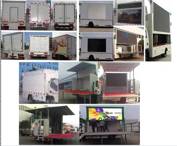 | 整車備注: | 1,該車是進(jìn)行舞臺(tái)文藝表演的專用車輛。車輛顏色可選;文字噴涂位置可變化。車廂頂棚封閉,并采用衍架結(jié)構(gòu),可升降,車廂兩側(cè)板可選裝液壓展開,與頂棚形成整車舞臺(tái)頂棚;活動(dòng)舞臺(tái)板可折疊于車廂內(nèi),通過展開裝置展后與固定舞臺(tái)臺(tái)面形成整車舞臺(tái)臺(tái)面; 可根據(jù)用戶要求選裝導(dǎo)流罩,頂板延伸遮陽(yáng)板;選裝左右LED屏舉升或不舉升,選裝廣告燈箱或者條屏,選裝后部雙開門或者左單開門或者右單開門,后部可選裝液壓升降尾板,尾板收起狀態(tài)水平長(zhǎng)度300mm;底盤大梁部分選裝支撐裝置,2,防護(hù)材料Q235,左右側(cè)面下部為裙板結(jié)構(gòu);后防護(hù)連接方式:焊接連接,斷面尺寸(mm):100×50,后防護(hù)離地高度400mm;3,ABS型號(hào)為:CM4XL-4S/4K(4S/4M) 生產(chǎn)廠家為:廣州科密汽車電子控制技術(shù)股份有限公司4,隨底盤選裝駕駛室 | ||