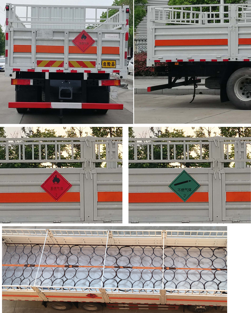 | 1、該車為危險品運輸車.該車用于運輸具有獨立容器(瓶)包裝的易燃氣體:液化石油氣,壓縮甲烷或甲烷含量高的壓縮天然氣,乙炔,乙烷,丁烷,丁烯,丙烯,二甲醚,壓縮氫,類項號2.1;用于運輸具有獨立容器(瓶)包裝的非易燃無毒氣體:二氧化碳,壓縮氧(氮,空氣,氦,氬,氖),類項號:2.2。液壓升降尾板收起狀態(tài)水平長度為290mm,尾板質(zhì)量為550kg。2、側(cè),后防護材料均為Q235,螺栓連接;后防護截面為圓形,直徑為120mm,下邊緣離地高500mm。選裝后部無液壓升降尾板,選裝后部無尾板時,后防護螺栓連接,截面尺寸120×60mm,下邊緣離地高500mm。3、隨底盤選裝平頂駕駛室;選裝駕駛室前面罩;高頂駕駛室頂部氣喇叭為選裝件;駕駛室前角擾流板為選裝件。僅選用排氣管前置、限速裝置(限速80km/h)、前輪盤式制動及子午線輪胎的底盤;安裝帶衛(wèi)星定位功能的行駛記錄儀。ABS型號/生產(chǎn)廠家:ABS 8/東科克諾爾商用車制動系統(tǒng)(十堰)有限公司。采用的發(fā)動機DDi75E350-60對應(yīng)油耗值為38.1L/100km。后軸采用空氣懸架,轉(zhuǎn)向輪裝備輪胎爆胎應(yīng)急防護裝置。 | |||