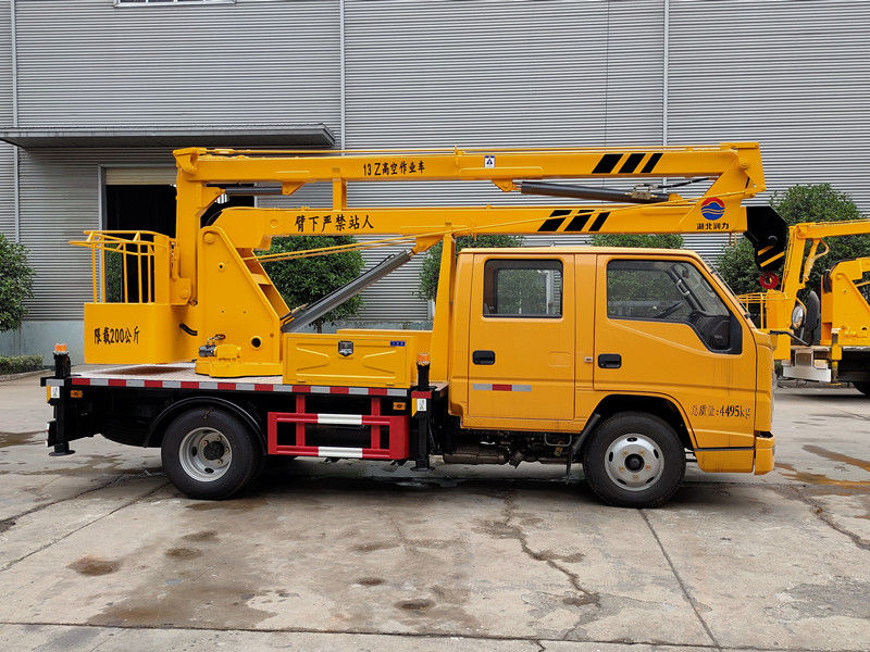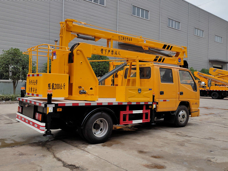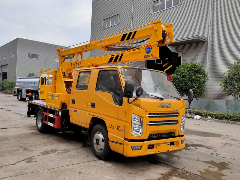 江鈴13米藍(lán)牌高空作業(yè)車整車配置:江鈴(新款)雙排工程黃駕駛室,軸距3360mm,江鈴115馬力國六發(fā)動(dòng)機(jī),油剎,五檔變速箱,7.00R16鋼絲胎,帶ABS、方向助力、2噸前橋、3.5噸后橋,空調(diào)。(該車上下均可以操作,吊籃帶操作)